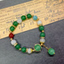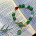 飲月・丹恒をイメージした天然石ブレスレットです。 翠をメインに白や黄色、髪のメッシュ部分の赤を一つだけ混ぜたデザインとなっております。 撮影状況により、画像と実物の色合い等に違いが出る場合があります。 ご不明な点はお気軽にお問い合わせください。 マグネット金具式となっていますが、外さなくても着用可能となっています。 内径:約17cm 金具の色;ゴールド *ご注意* *素人によるハンドメイド作品です。 *ハンドメイド作品ですので、同じ品を複数ご購入頂いた場合でも少しずつ個体差がある場合があります。 *金属を使用しております。金属アレルギーの方のご着用はご注意ください。 *一つ一つ丁寧に作成しておりますが、既製品と比べて強度や完成度が劣る場合がございます。ご了承の上お取り扱いにはご注意ください。 *水濡れや直射日光の当たる場所に放置しますと劣化が早まる恐れがありますのでご注意ください。