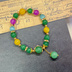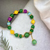 アベンチュリンをイメージした天然石ブレスレットです。 翠をメインに目の色の水色や紫、種族の黄色を混ぜたデザインとなっております。 撮影状況により、画像と実物の色合い等に違いが出る場合があります。 ご不明な点はお気軽にお問い合わせください。 マグネット金具式となっていますが、外さなくても着用可能となっています。 内径:約17cm 金具の色;ゴールド *ご注意* *素人によるハンドメイド作品です。 *ハンドメイド作品ですので、同じ品を複数ご購入頂いた場合でも少しずつ個体差がある場合があります。 *金属を使用しております。金属アレルギーの方のご着用はご注意ください。 *一つ一つ丁寧に作成しておりますが、既製品と比べて強度や完成度が劣る場合がございます。ご了承の上お取り扱いにはご注意ください。 *水濡れや直射日光の当たる場所に放置しますと劣化が早まる恐れがありますのでご注意ください。