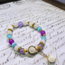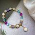 ロビンをイメージした天然石ブレスレットです。 白をメインに瞳や髪、服の色である薄紫、水色、ローズピンクを織り交ぜたデザインとなっております。 撮影状況により、画像と実物の色合い等に違いが出る場合があります。 ご不明な点はお気軽にお問い合わせください。 マグネット金具式となっていますが、外さなくても着用可能となっています。 内径:約17cm 金具の色;ゴールド *ご注意* *素人によるハンドメイド作品です。 *ハンドメイド作品ですので、同じ品を複数ご購入頂いた場合でも少しずつ個体差がある場合があります。 *金属を使用しております。金属アレルギーの方のご着用はご注意ください。 *一つ一つ丁寧に作成しておりますが、既製品と比べて強度や完成度が劣る場合がございます。ご了承の上お取り扱いにはご注意ください。 *水濡れや直射日光の当たる場所に放置しますと劣化が早まる恐れがありますのでご注意ください。