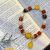 トパーズをイメージした天然石ブレスレットです。 赤をメインに髪色の白や基石の色である黄色、カブの黒を織り交ぜたデザインとなっております。 撮影状況により、画像と実物の色合い等に違いが出る場合があります。 ご不明な点はお気軽にお問い合わせください。 マグネット金具式となっていますが、外さなくても着用可能となっています。 内径:約17cm 金具の色;ゴールド *ご注意* *素人によるハンドメイド作品です。 *ハンドメイド作品ですので、同じ品を複数ご購入頂いた場合でも少しずつ個体差がある場合があります。 *金属を使用しております。金属アレルギーの方のご着用はご注意ください。 *一つ一つ丁寧に作成しておりますが、既製品と比べて強度や完成度が劣る場合がございます。ご了承の上お取り扱いにはご注意ください。 *水濡れや直射日光の当たる場所に放置しますと劣化が早まる恐れがありますのでご注意ください。