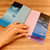 *ページ毎に紙色が変わる、カラフルなノートです。 *落ち着いた紙色のノート、しっかりした紙色のノート、2種類あります。 *罫線部分は4種のデザインを繰り返しています。月と汽車、銀河、雪山、オーロラをデザインしています。 ※ノートと同じデザインの便箋もございます 。 ○幻想的な風景のアクリル画便箋セット1 https://saku-kobo.booth.pm/items/5075522
