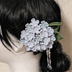 ご覧頂きありがとうございます 一越ちりめんを使用したつまみ細工の髪飾りです。 紫陽花のお花をデザインしてコーム飾りに仕上げました。 可愛いビーズの下がりも作りました。 下がりにはカニカンが付いていて 取り外しはもちろん コームの左右どちらにも付けられる様になっています。 お好きな向きでお付け頂けます。 浴衣を着た時などの髪飾りにいかがですか? 《サイズ》 10足コーム 縦3cm 横4cm 花1つの直径 2cm 全体 直径約11cm 下がり 8.5cm 1つ1つ丁寧にお作りしていますが 素人による手作り作品ですので接着剤のハミ出しや歪み等がある場合があります。 ご理解頂けると幸いです。 ちりめん生地は水に弱く濡れると縮んでしまいます。 また長時間の圧迫でも変形してしまいます。 ご使用時や保管には十分にご注意ください。 実際の色はお使いのモニターによって多少異なって見えることがあります。 ご了承ください。 発送は郵便局からの定形外郵便での発送になります。 土日、祝日の発送は出来ません。