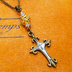 アンティークゴールド ゴシック調ロザリオとメタルビーズを組合せたネックレス 長さ調整可 アジャスター可