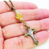 アンティークゴールドのゴシック調ロザリオとメタルビーズを組合せたスタイリッシュなネックレスです 中央にはシルバーカラーで彩色して、クリアレジンによって立体的に仕上げたロザリオがあり、その上にはラインストーン入りのゴールドカラーのメタルビーズ ゴシック調のデザインが存在感を放ち、お洒落なコーディネートのアクセントにぴったりです アンティークゴールドの風合いとメタルビーズの輝きが絶妙にマッチし、華やかな雰囲気を演出します 落ち着きのある雰囲気を桃しながらもキラリと輝きを放つ個性的なアイテムに仕上がっています このロザリオネックレスが、あなたの魅力を引き立て、特別な日やイベントで輝かしい存在感を演出します ぜひ、お気に入りのアイテムに加えてみてはいかがでしょうか ※モチーフなどは亜鉛合金にメッキ加工、ネックレスのチェーンは鉄製にメッキ加工、金具などはスチール製ですので、金属アレルギーの方はご注意ください ※チェーンの長さは約45cmですが、無料にて50cmに延長可能です ※アジャスター(約5cm)を追加できます 「素材」 チャーム:亜鉛合金:メッキ加工 レジン ラインストーン チェーン:アイアン:メッキ加工 スチール等(金具など) 「寸法」 ロザリオサイズ:約28×18mm チェーン長さ:約45cm 重量:約4.8グラム 「ご注意」 ※ご使用のモニターの色の違いにより、実際の商品と色味が若干異なる場合がございます NA-NK209
