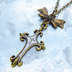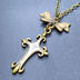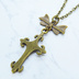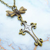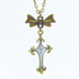 アンティークゴールド ゴシック調ロザリオとリボンチャームを組合せたネックレス 長さ調整可 アジャスター可