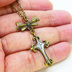 アンティークゴールドのロザリオとリボンチャームを組み合わせた、ハンドメイドの個性的なネックレスです ゴシックな雰囲気漂うアンティークゴールドのロザリオは、重厚感のある雰囲気を演出します リボンチャームはフェミニンな雰囲気をプラスし、ゴシックな雰囲気とエレガントさを兼ね備えたデザインになっています 長さ調節可能なチェーンなので、お好みの長さで着用できます 個性的なファッションがお好きな方や、ゴシックな雰囲気のアクセサリーをお探しの方におすすめです アンティークゴールドのロザリオとリボンチャームが、あなたの個性を引き立ててくれます このロザリオネックレスが、あなたの魅力を引き立て、特別な日やイベントで輝かしい存在感を演出します ぜひ、お気に入りのアイテムに加えてみてはいかがでしょうか ※モチーフなどは亜鉛合金にメッキ加工、ネックレスのチェーンは鉄製にメッキ加工、金具などはスチール製ですので、金属アレルギーの方はご注意ください ※チェーンの長さは約45cmですが、無料にて50cmに延長可能です ※アジャスター(約5cm)を追加できます 「素材」 チャーム:亜鉛合金:メッキ加工 レジン チェーン:アイアン:メッキ加工 スチール等(金具など) 「寸法」 ロザリオサイズ:約28×18mm チェーン長さ:約45cm 重量:約4.8グラム 「ご注意」 ※ご使用のモニターの色の違いにより、実際の商品と色味が若干異なる場合がございます NA-NK210