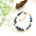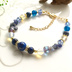 刀剣乱舞、三日月宗近をイメージしたブレスレットです。 何も知らない人から見ればただのブレスレット。でも本当は好きなあのキャラをイメージしてある…そんないつでもどこへでも付けていきやすいアクセサリーです(^^) 美しく海底が覗けるような爽やかなブルー系の天然石を集めたブレスレットです。 夏の暑さの中でも爽やかなアクセサリーを身に付けませんか? キャンディのように可愛らしいグラデーションのキャンディクォーツを使うことで可愛らしさをプラス。 更にサザレ石やメタルビーズ、ロンデルを加えて単調すぎないブレスレットに仕上げました。 これ一つでも見劣りしないクリスタルや天然石の美しさをお楽しみください。 これからの季節、海や山、お祭りなど様々な場面で活躍すること間違いなし(^^) 天然石を使用していますので濡れても安心♪ ちょっとした川遊びにも最適ですよ。 (金属部分は濡らさないでください) 【使用材料】 キャンディクォーツ ラピスラズリ ブルーアイアゲート 合成ホワイトオパール ガラスビーズ チェコガラスビーズ メタルビーズ ロンデル その他 【サイズ】約17~21cm アジャスターがありますので、約17~21cmで調節出来ます。 水に触れる際は外して頂くと金属の劣化を遅らせることが出来ます。 ハンドメイド品ですのでご理解頂いた上でご購入ください。 【pulia 】