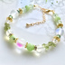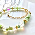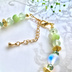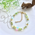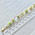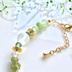 刀剣乱舞、石切丸をイメージしたブレスレットです。 何も知らない人から見ればただのブレスレット。でも本当は好きなあのキャラをイメージしてある…そんないつでもどこへでも付けていきやすいアクセサリーです(^^) ホワイトとグリーンの天然石でまとめた爽やかな天然石ブレスレットです。 夏に生き生きと成長する植物をイメージしました。 夏の暑さの中でも爽やかなアクセサリーを身に付けませんか? 透明感のある白や黄緑色の天然石を集めた夏にぴったりの涼し気なアクセサリー。 サザレ石やメタルビーズ、ロンデルを加えることで単調すぎない大人らしいブレスレットに仕上げました。 これ一つでも見劣りしないクリスタルや天然石の美しさをお楽しみください。 これからの季節、海や山、お祭りなど様々な場面で活躍すること間違いなし(^^) 天然石を使用していますので濡れても安心♪ ちょっとした川遊びにも最適ですよ。 (金属部分は濡れたまま放置すると劣化が早まりますので水分をふき取るなどしてください) 【使用材料】 キャンディクォーツ ペリドット ルナフラッシュ グリーンアベチュリン ガラスビーズ メタルビーズ ロンデル 【サイズ】約17~21.5cm アジャスターがありますので、約17~21.5cmで調節出来ます。 また、5cmの長めのアジャスターへの変更も出来すので必要な方は備考欄にご記入ください。 水に触れる際は外して頂くと金属の劣化を遅らせることが出来ます。 ハンドメイド作品であることをご理解頂きますようお願いいたします。 配送は、普通郵便となります。配送事故への補償はございません。 ご心配な方は+100円でクリックポストへの変更が可能ですのでご購入前にお知らせくださいませ。 【pulia 】