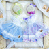 シフォン生地を重ねたトップスに、ふんわりシフォンフリルとりぼんをあしらった、爽やかなワンピースセットです。 靴下、帽子付きなのでコーディネートが完成できます。 ハートのチャームが可愛いオーバースカートは取り外しができて、前後お好みで着用できる3way仕様です。 麦わら帽子のお花はドライフラワーをレジンコーティングしました。 花びら一枚一枚、時間をかけて丁寧に加工しています。(一応リボン後ろの設計ですが、お好きな位置で着用できます。)