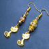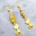 ゴールドカラー 猫とメタルビーズを組合せたコンパクトな大人可愛いアシンメトリーピアス サージカル可