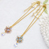 紫陽花と雨露 綺麗な2色のエポ入りの紫陽花コネクターチャームと オーロラカラーのスワロフスキークリスタライズ雫トップビーズを繫げて。 繊細な細さの喜平チェーンを使用しセミロングネックレスに仕立てました。 アジャスターの先に小さなオーロラカラー国産ガラスビーズを使用し、見えないところも可愛く。 DDサイズでタートルネックトップスにも丁度いい程の長さです。 梅雨の季節、ワンピースに合わせたり シンプルな白ブラウス等に上品コーデに是非。 紫陽花との野外撮影にもピッタリですね。 MSD~SD17位迄 約16cm+アジャスター 1.2mm幅喜平チェーン コネクターチャーム:14mm 雫(スワロフスキークリスタライズ)6128:8mm アジャスターの先には国産ガラス雫ビーズ4mmを使用。 金具:ゴールドカラー(メッキ) ※ネックレス部分のサイズ調整可能です(無償範囲内)。 ご希望の場合はメッセージにてご連絡いただくか、事前にお問い合わせ下さい。 ※仕入れを要する受注製作となります。