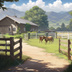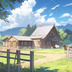 牧場のイラスト背景素材 5枚セット 1920×1080px/72dpi/pngデータ 横長のweb用背景素材です。 Midjourneyという画像生成AIで出力しました。 すべての画像を出力後に編集しています。