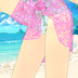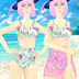take a walk on the beach in this vintage high waisted set. Set includes: Floral Tropical High-waisted Bikini, Pink Lace Sarong Skirt, Blue/Pink PalmTree Flipfllops, and Straw Blue Lace Ribbon Sun Hat.
