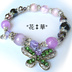 キャラクターイメージカラーで制作した天然石ブレスレットです。 紫と黒を組み合わせて魅力的な色合いに仕上げました。 蝶チャームが煌めきます。 着けやすいゴムタイプ。 ◆サイズ◆内周約15cm(女性標準サイズ) ★使用している天然石★ ○ラベンダーアメジスト12mm(天然) ○ラベンダージェイド10mm(天然/加熱処理) ○ヘマタイト64面カット10mm(天然) ○ローズクォーツオーロラ10mm(天然ローズクォーツにオーロラ加工) ★クリックポスト発送です★ ※ブレスレットサイズ変更について※ ★小さく、または大きく変更ご希望の場合は、ご購入時のお取引メッセージ欄でお知らせ頂くか、、SHOPお問い合わせ欄からご相談ください。 ★小さくする場合はできるだけ天然石以外のパーツで調整いたしますが、割引はできません。 ★大きいサイズは+3cmくらいまで無料でお受けいたします。 それ以上大きくなる場合は追加のパーツ料を頂きます。事前にご相談ください。 当方のブレスレットは一般的なブレスレット用サイズプレートを使用して測っています。他店でご購入経験のある方は、同じサイズを選んで頂いて問題無いと思います。 ゴムブレスレットの推奨サイズ感は、指一本くらい入る隙間があるのがベストです。ピッタリすぎると不快感があります。 それぞれ手首周り実寸サイズに合わせたサイズ感のお品をご用意しております。実寸と同じサイズ表記のお品をご購入ください。 ビーズの種類や組み合わせによって若干の誤差が出ます。ミリ単位での調整はできません。 ★天然石アクセサリーに関する取り扱い説明書を同封いたします。使用している石の意味も記載しております★