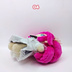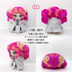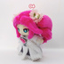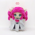 75%wawaちゃんボディの、ちょっと大きいめたんちゃんのぬいぐるみです。 左右2本ずつの髪パーツをねじねじ寄り合わせてめたんちゃんのツインドリルな髪型を表現しています。 ドリルの根本を後頭部に糸で留め付けています。 ドリルの中にはアルミワイヤーと綿を仕込んでいます。 アルミワイヤーはこれまで使用していたプラスチック線材と比べると保持力が高く、ヘアアレンジの自由度が高いです。そのため固定箇所を少なく抑えました。ドリルの巻き具合を変えたり毛先の向きを変えたりして遊べます。 ふんわり巻き髪ツインロールだけでなく、ツインテールっぽく垂らしてみたり、おだんごみたいにくしゅくしゅ丸めてもかわいいです! ワイヤーは何度もくり返し曲げ伸ばしすると内部で折れてしまう可能性があります。ドリルを動かす時はできる限り優しく、そーっと扱ってください。 後ろから見るとドリルの根本がハート型っぽく見えるのが密かなこだわりです。 お洋服はいつもの白ロリ服を模したワンピースです。 ボックスプリーツを前とサイドに合計4箇所畳んでいます。 このひだをうまく支えにすると自立させることができます。 白い部分はボディと同じソフトボア生地ですべすべな触り心地です。 ワンピースの後ろを面ファスナーで留めて着せます。 コットンレースのリボンを首に巻いて、ロングアンドショートステッチのハートブローチで留めます。 人間用のブローチピンを使用しています。ピン先にご注意ください。 もちろんブローチなしでもかわいいです! ヘアアクセサリーは市販のパーツを使用しています。 ピンクのお花の髪飾りです❀ このお花のパーツ、とってもかわいくてめたんちゃんによく似合ったのですが今回使用分でラストです。再購入できるかはわかりません。 丸く開いた目にピンクのまつ毛が印象的なお顔です。 真ん中のハイライトはキラキラ刺繍糸です。 短く、わずかにカーブをつけて指した口元は、見る角度によって微笑んでいるようにも、きゅっと口を結んででいるようにも見えます。 めたんちゃんには「キスをすることでエネルギーを他者に分け与えることができる」という公式の設定があるんですけど、その力を使おうとしているような…そんな解釈もできる顔つきだと思います。 今月一番最初にできたぬいぐるみです。後に作った2体とは肌の生地が異なり、見比べると毛の密度が少し薄いです。 お顔の木目が気になる場合は、清潔な指先や歯ブラシ等で優しくなでて毛の流れを整えてあげてください。 平栗あずささんの著書『てづくり推しぬいwawaちゃん』の型紙を使用しました。型紙を75%に縮小した15cmサイズのボディです。 服の上からではわかりにくいですがくびれがあります。腰のあたりが少し細くなっています。 https://www.graphicsha.co.jp/detail.html?p=54859