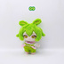 あんこもんがいろいろ濃い目だから、同じサイズであっさりしたずんだもんを作ろう! と思って作ってみたら色素薄めのずんだもんになりました。 白い肌、細いアイラインに淡い色の瞳、幅広のハイライトはどこか異国風でもあります。 涼やかできりりとした端正なずんだです。性別はあなたの心の中に… 明るい瞳のずんだもんには蛍光グリーンのサロペットがよく似合います。 これまで分割していた後ろ身頃をパンツと一体化し、端を見返しで処理するようにしました。 結果、ヒップにもったり感が出て後ろ姿のかわいさが増しました。 またボディの足を若干細くし、裾のギャザーと覗く足先のバランスが良くなりました。 トップスは後ろを面ファスナーで留めて着せます。サロペットの肩紐も面ファスナーで背面に留めます。グログランリボンを首に巻いてえだまめブローチで留めます。 えだまめブローチも明るい黄緑です。サテンステッチでさやの形を作ったうえで、豆に見立てたビーズを縫い付けています。 ブローチピンは人間用です。ピン先で怪我をしないようお気をつけください。 しっぽ…ずん毛の飾りはお花の形のクリアボタンです。 ずん毛を支えにバランスを取ってあげると自立します。 サイドから出ているぴよ毛の根元付近を後頭部に留め付け、横に広がりすぎないようにしています。 毛先だけ外ハネさせてみてもかわいいです。 人間の耳はありません。 平栗あずささんの著書『きせかえできるぬいぐるみ てづくり推しぬいBOOK』の型紙を使用しました。11cmサイズのボディです。 https://www.graphicsha.co.jp/detail.html?p=47453