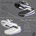 ALL AIR_light(アバター用シューズ)/2色 ※blenderで装着してからunityに持っていく、又はblenderで装着してVRMエクスポートする事を前提で作成しています。 ①ALL AIR light ②ALL AIR light(textureのみ) ③ALL AIR light_W ④ALL AIR light_W(textureのみ) ⑤差替え用VRoidStudioシューズ ※当商品はVRoidStudioアバターに⑤のシューズを履かせてからblenderで差替えているのでVRoidStudio製アバターに履かせる為にご購入いただいた方は⑤を使うことでスムーズに装着できるかも知れません。 ※後から別カラーをお求めの際はtextureのみの購入がお得です。 blenderで作成(バージョンはblender 3.6) 内包データ形式 blender(Mtoon前のデータもついています。)、fbx、texture fbxはunityにもっていく為の設定でエクスポートしてます。 sizeやオブジェクトデータ情報は添付スクショ画像をご確認ください。 clusterでの使用写真、埋め込み動画はblenderでアバターに装着してからunityでVRMにしたデータ(アバター0_20240516)、blenderで装着してそのままVRMエクスポートしたデータ(ALLneet_mini_20240525)を使っています。 ※当データの再配布(改変後配布含む)禁止。著作権は破棄しません。 ※改変使用OK、データの取出し不可能な形での商用利用OKですが不具合等の責任は一切負いません。