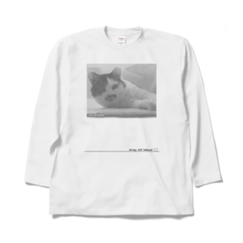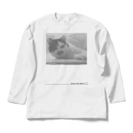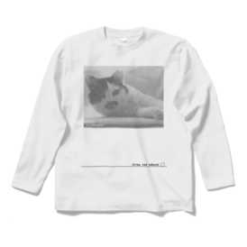 ロングスリーブTシャツ - XL - ホワイト「のら猫さくら」Tシャツ。色はモノクロ。 何か気配を感じたこの顔。 この商品はpixivFACTORYで作られた商品です。サンプル画像は完成イメージのため、実物と異なる場合があります。