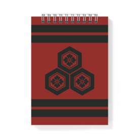 メモ帳 直江兼続 家紋 三盛亀甲に花菱 赤地に黒縞 指物風