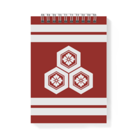 メモ帳 直江兼続 家紋 三盛亀甲に花菱 赤地に白縞 指物風