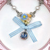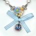 348 ブルーデイジーとちびくまちゃんブーケネックレス(かごチャーム)