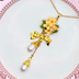 ご覧いただきましてありがとうございます。 こちらは樹脂粘土製のパーツを使用したネックレスです。 ちょこんと顔をのぞかせる小さなくまちゃんが可愛らしいブーケにリボンコネクターやパールビーズで可愛らしく飾り付け、ボールチェーンをとおしてシンプルなデザインに仕上げています。 動くたびに飾り部分が首元で揺れて、とっても可愛いですよ! サフィックス社のスウェットバリアを使用しての金属アレルギー対応が可能です。 ご希望の方は右のメニューより「金属アレルギー対策有」の項目を選んでください。 ※注意※ ☆お花のパーツは樹脂粘土でできています。性質上強い力や水濡れに弱いので、やさしいお取り扱いをお願い致します。 ☆定形外郵便でのお届けのみとなります。 【Size】 チェーン:45~50cm(アジャスター:5cm) ネックレストップ: ・ブーケ:約1.5cm×1.7cm ・リボンコネクター:1.9cm×1cm ・パールビーズ:1cm×1.1cm