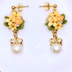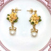ご覧いただきましてありがとうございます。 樹脂粘土製のパーツとリボン付きパールチャームを使用しています。 ブーケとチャーム、ゴールドの金具の色味が調和した、とてもきれいなピアスです。 ゆらゆら揺れるパールチャームが可愛いですよ♡ 写真ではスタッドピアス(サージカルステンレス)でお仕立てしていますが、お好きなパーツへの変更も無料で承ります。 ご希望のパーツを選択していただきますようお願いいたします。 サフィックス社のスウェットバリアを使用しての金属アレルギー対応も可能です。 ご希望の方は右のメニューより「金属アレルギー対策有」の項目を選んでください。 ※注意※ ☆お花のパーツは樹脂粘土でできています。性質上強い力や水濡れに弱いので、やさしいお取り扱いをお願い致します。 ☆定形外郵便でのお届けのみとなります。 【Size】 ・ブーケ:約1.5cm×1.7cm ・リボン付きパールチャーム:1.2cm×10cm
