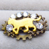 ゴールドカラー 歩く猫シルエットモチーフとラインストーンのスチームパンク風ブローチ ラインストーン バッジ