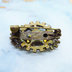ゴールドカラーの歩く猫シルエットモチーフにラインストーンを散りばめたコンパクトなブローチです アンティークゴールドの大きめ歯車をベースにして歩く猫モチーフとラインストーンを組合せてあります コンパクトなサイズですが見た目華やかにキラキラと輝くようにラインストーンを散りばめてあります スチームパンクな雰囲気をちょっとプラスして普段の生活に潤いはいかがでしょうか ※制作は猫・歯車・金具は接着にて固定したあとにレジンにてカッチリ補強してあります 「素材」 チャーム:亜鉛合金・メッキ加工:レジン ラインストーン 金具:スチールなど 「寸法」 全体サイズ:約27mm×18mm 猫サイズ:約19mm×12mm 厚み:約11mm 重量:約3.1グラム 「ご注意」 ※ご使用のモニターの色の違いにより、実際の商品と色味が若干異なる場合がございます NN-BC12