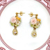 396 ピンクのバラとちびくまちゃんブーケピアス(サージカルステンレス)/イヤリング/樹脂ノンホールピアス/クリップ式イヤリング(サージカルステンレス)