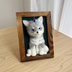 羊毛フェルトで制作しました。透明な角の生えた紫の瞳の柴犬風の灰色わんこです。マイペースな性格でおすわりして遊んでもらえるのを待っています🐕✨ フレームに入った作品で卓上と壁掛け(画像5枚目)の2パターンで飾ることができます。 作品は箱に入れた上で更に段ボールで梱包して発送します♪