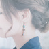 透かしとガラスビーズのミルキーブルーカラーのピアス/イヤリング