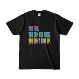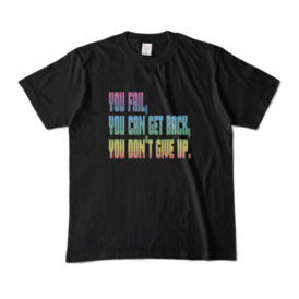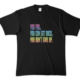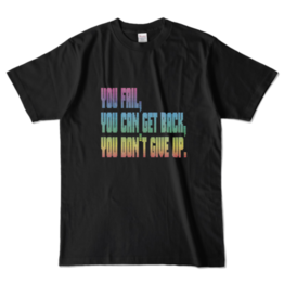 「失敗しても、自分が諦めなければ取り戻せる」 私の座右の銘をデザインしたTシャツです。 虹色は無限の可能性を示してます。 この商品はpixivFACTORYで作られた商品です。サンプル画像は完成イメージのため、実物と異なる場合があります。