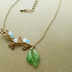 ---------------------------------------------------------------------------------- こちらは【イベントに夢中!2 〜お花に夢中〜(2024年07月12日~15日)】に出品の作品です。 花をモチーフにしたアクセサリーを作りました。 ---------------------------------------------------------------------------------- メタルゴールドの枝パーツにワイヤー巻きのチェコビーズを添えたネックレスです。 リーフ型のビーズを添えて瑞々しさをイメージしました。 ※金属アレルギー、メッキ加工が肌に合わない方は注文をお控えください。 【サイズ等の仕様】 全体長さ アジャスター部分を含まず約47cm(アジャスター約4cm)