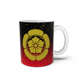 マグカップ 織田信長 家紋 織田木瓜 黒地に赤 金箔