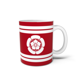 マグカップ 織田信長 家紋 織田木瓜 赤地に白縞