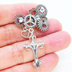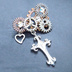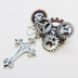 アンティークシルバー ロザリオと歯車を組合せたスチームパンク風ブローチ バッジ ラインストーン