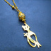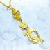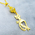 ラメ入りゴールドカラーのスマートな猫シルエットモチーフとメタルビーズのペンダントネックレス 長さ調整可