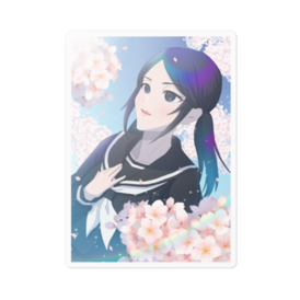 ステッカー - 100 x 100 (mm)桜とセーラー服の黒髪少女のイラストをステッカーにしました。 この商品はpixivFACTORYで作られた商品です。サンプル画像は完成イメージのため、実物と異なる場合があります。