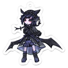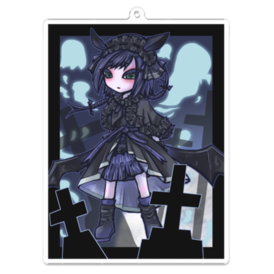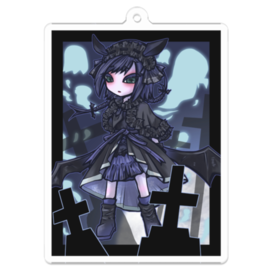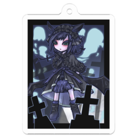 アクリルキーホルダー角形 - 100 x 100 (mm)(角形)オリジナルキャラ、バイカのハロウィン衣装(こうもり)です。 人物のみバージョンと四角バージョンがあります。 この商品はpixivFACTORYで作られた商品です。サンプル画像は完成イメージのため、実物と異なる場合があります。
