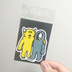 キイロと穴あきフェイスが肩を組んだステッカー。 屋外用の素材です。強接着で丈夫です。 接着する場所の汚れをよく落として貼ってください。 サイズ:縦74×横62mm 素材:塩ビ 耐水性:○ 耐候性:○ 貼り直し:× ※耐水性・耐候性ですがどんな環境でも使用可能と保証するものではありません ※凹凸面には強接着の効果が発揮できない場合があります 【ご注意 必ずお読み下さい】 ■販売価格には手数料・梱包料が含まれている為、各種対面イベントでの販売価格と異なります。 ■画像の色合いと実際の商品の色合いが多少異なる場合があります。ご理解の上ご購入頂きますようお願い致します。 ■サイズは素人採寸です。できるだけ正確に測っていますが、多少の誤差がある可能性があります。ご理解の上ご購入頂きますようお願い致します。