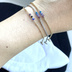 ステーションチェーンと呼ばれる、チェーンに一定間隔でディスク型のパーツがついたものを使用しています。 華奢な印象のチェーンには、パープルとブルーのスワロフスキービーズ(3ミリ)と、ブラックトルマリンを合わせました。 さりげない存在感は、デイリー使いにぴったりです。 ロープチェーンのブレスレットと重ね付けも素敵じゃないかなと思います。 ふとした瞬間に目に入る推し色は、いつもを少し上向きな気分にさせてくれます。 こちらは丁度いいサイズでお作りする為に、ご購入後に手首のサイズをお伺いします。 手首、測るのが少し大変かと思いますが、ご協力お願いします🙏🏻 ご要望があれば、アジャスター付にも変更ができます。 メッセージにてお知らせくださいませ。