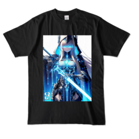 カラーTシャツ - XL - ブラック (濃色)フェルデ銀河帝国の第一軍司令官、上級大将「ブランディーヌ」 冷徹な青い輝きが宿る刃は、彼女の戦略と技術の結晶 デジタルとアナログ、機械と魂が融合したその姿は未来の戦士そのもの 彼女の前に立つ者は、すべてが電脳の海に飲み込まれる 「完璧な秩序が、混沌を制す」 精緻に編み込まれた戦略と、揺るぎない決意が、銀河の覇権を彼女の手に握らせる この商品はpixivFACTORYで作られた商品です。サンプル画像は完成イメージのため、実物と異なる場合があります