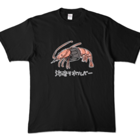カラーTシャツ - XL - ブラック (濃色)この商品はpixivFACTORYで作られた商品です。サンプル画像は完成イメージのため、実物と異なる場合があります。 海老リボルバーTシャツの黒地バージョンです。 男は黒に染まれ。