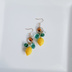 存在感たっぷりのレモンの形をしたチェコビーズをメインにぷっくり可愛いしずくビーズやエメラルドグリーンなどのガラスビーズなどを一緒にサークルフープにじゃらじゃらと合わせたお洒落なピアス/イヤリングとなっております☺ メインのお色は瑞々しいイエローとエメラルドグリーン色、ゴールド金具と合わせて初夏にぴったりの爽やかな色合いでまとめました☆ エメラルドグリーンやビタミンカラーがお好きな方にはもちろんや揺れるタイプの作品がお好きな方、レモンがお好きな方にもおすすめの作品となっております。 かなり存在感がありますので、耳元の可愛いアクセントとしてご利用頂けると思います☺ アレルギー対応のピアスやイヤリングへの変更についてはご注文時にオプションよりご希望金具をお選び下さい ※こんな方におすすめ♪ *大切な方へのプレゼントに *レモンモチーフがお好きな方に *揺れるデザインの作品がお好きな方に ☆チェコビーズ イエローオペーク レモンカット 14mm ☆しずく型チェコビーズ ティールグリーン0 クリア 9x6mm ☆ガラスビーズ オパールグリーン フラットコイン 4mm ☆ガラスビーズ エメラルドグリーン ボタンカット 6mm ☆ガラスビーズ フルコートゴールド ボタンカット 6mm ☆サークルフープ ゴールド ☆Tピン ☆三角カン ☆丸カン ☆ピアス用金具(フック式☆ゴールド) 長さは約4.5cmとなっております。(1cm程のピアス金具を含む)