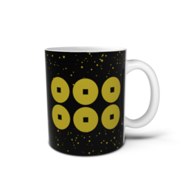 マグカップ 真田幸村・昌幸家紋 六文銭 黒に金粉ちりばめ
