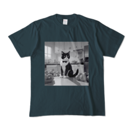 シンプルな蝶ネクタイをキリッとつけた、愛らしいはちわれ猫がこちらを見つめています。この猫ちゃんの真っ黒な体に白い眉毛のような模様が特徴的で、まるで小さな紳士のような佇まい。遊び心満載の蝶ネクタイが、その魅力をさらに引き立てています!何かを企んでいるような表情が堪りません。まるで特別なイベントの準備をしているかのようです。 この画像を見たら、あなたも心が温かくなること間違いなし! この商品はpixivFACTORYで作られた商品です。サンプル画像は完成イメージのため、実物と異なる場合があります。