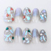 サイズ:35468 (指・縦*横(単位:cm)) 親指・2.2*1.7 人差指・2.0*1.5 中指・2.1*1.6 薬指・1.9*1.4 小指・1.7*1.2 ※測定の際はメジャー等を使用してください。 横幅は一番幅広いところを、爪のカーブに合わせて測定してください。 ○注意事項○ ・現品のみの販売です。 サイズ変更は承っておりません。 ・個人の趣味で作成しております。 ダスト、気泡、色ムラ等はご容赦ください。 ・お使いの端末や閲覧環境により、実物と色味が異なって見えることがあります。 ・返品、返金にはご対応いたしかねます。 ○配送方法○ ・エアパッキン(プチプチ)で包装の上、あんしんboothパックで郵送いたします。 .。o○.。o○.。o○.。o○ ハンドメイドの性質をご理解いただいた上でご利用いただきますようお願いいたします。