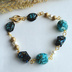 暦の上では秋なのに、夏の名残というには余りに夏真っ盛りなブレスレットを作ってしまいました。ゴールドを金具のメインに、ホタルガラス風レジン、浦島カラーちっくなラメの入ったレジンビーズ、ターコイズのさざれを封入したレジンビーズを繋げました。 いやー作ってる最中からずっと『これ浦島やなぁ』と思ってましたが、この新しく買ったラメはどうなんだろう?三日月や鬼丸のつもりだったんだが…と不安でしたが、出来上がってみれば問題なく浦島でした。 どちらかというと極イメージですね。おっきくなったねぇ。 金具はマンテルで、フリーサイズです。 ●アレルギー対応商品について 当店ではピアス、イヤリング、チェーン、アジャスター等にサージカルステンレス316を使用時明記しております。 体質には個人差がありますので、必ずしもアレルギーが出ないという保証ではございません。 樹脂ピアスも取り扱っておりますので、そちらもご検討下さい。 ●色褪せ・錆について ステンレス以外の、錆びやすい材質のパーツとの組み合わせの場合、そのパーツの錆びがステンレス表面に付着し「もらい錆」により錆びてしまうケースがございます。 その際は錆びをすぐに除去するようにしてください。 また、水に濡らしたりアルコール・汗等が付着しないようご注意下さい。 ●レジン作品について レジン作品は非常に繊細な為、強い衝撃を与えたり、高温・直射日光に長時間さらさないようご留意下さい。 また、水濡れやアルコール、汗などは劣化の原因となる為、触れないようにご注意下さい。