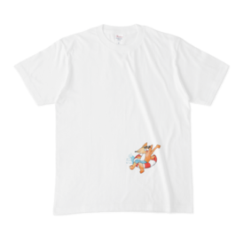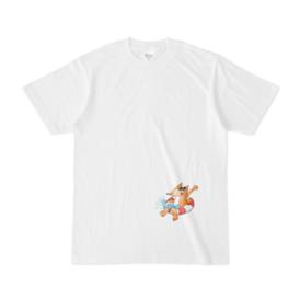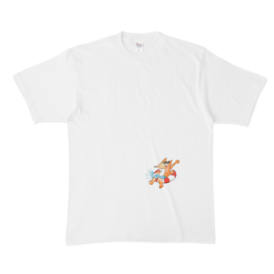 Tシャツ - XL - 白この商品はpixivFACTORYで作られた商品です。サンプル画像は完成イメージのため、実物と異なる場合があります。 両面にイラストが描かれているTシャツです。 少し変なTシャツを求めている方、全身でキツネの夏を堪能したい方にオススメです。